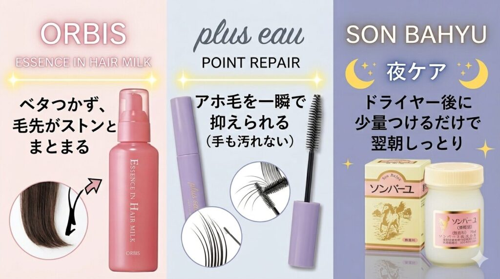 → アホ毛を一瞬で抑えられる(手も汚れない)