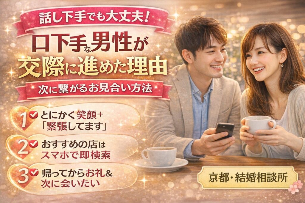 京都という土地柄、古風な価値観と現代的なライフスタイルが混在する中で、どうすれば30代男性が「選ばれる男」になれるのか。私たちはその戦略を熟知しています。