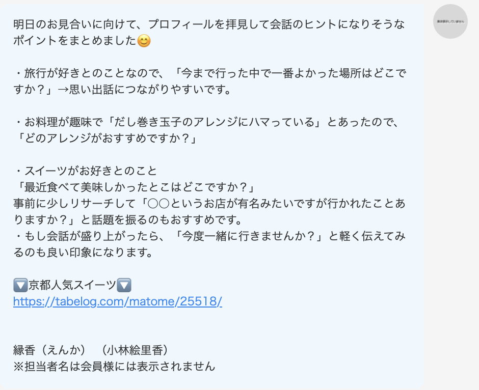 お見合い前に実際に会員さんに送っているメッセージ📩